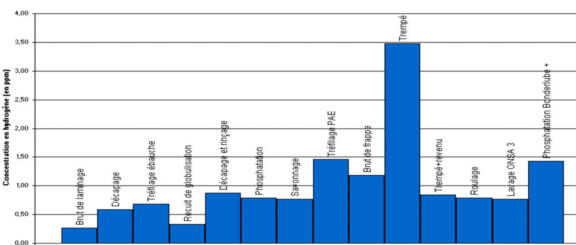 La cémentation gazeuse basse pression est un procédé récent qui se révèle être une source de pollution considérable aux hydrocarbures aromatiques polycycliques (HAP) et aux suies. Leur dépôt est une source d’encrassement coûteuse pour l’industriel et représente un risque pour la santé des salariés. Pour réduire la génération de ces composés et garantir la qualité du traitement, une campagne de prélèvements de gaz issus d’une cémentation a été menée sur un four industriel. Des analyses qualitatives et quantitatives ont été conduites pour une recette empirique bien définie. Sur la base des mêmes conditions opératoires, une recette optimale, issue d’une modélisation fine de l’ensemble du procédé, basée sur des lois phénoménologiques, a été testée sur le four et validée par les mêmes analyses.