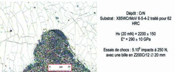 L’élaboration des couches dures obtenues par procédé PVD et PACVD est confrontée à de nombreuses difficultés techniques essentiellement liées à la finesse des structures étudiées. Si quelques outils spécifiques ont été mis au point pour mesurer leur épaisseur, leur dureté, le module de Young, évaluer leur adhérence, la plupart de ces essais s’avèrent largement insuffisants pour identifier la couche idéale pour une application donnée. Outre l’existence de nombreux pièges autour d’essais élémentaires pouvant conduire facilement à des conclusions erronées voire des aberrations, les sollicitations superficielles combinent une grande quantité de paramètres impossibles, à appréhender séparément. Ils sont le plus souvent mis en évidence par une augmentation progressive de la complexité des essais, pour plus de réalisme, mais au détriment du coût d’essai et de la qualité de leur exploitation.